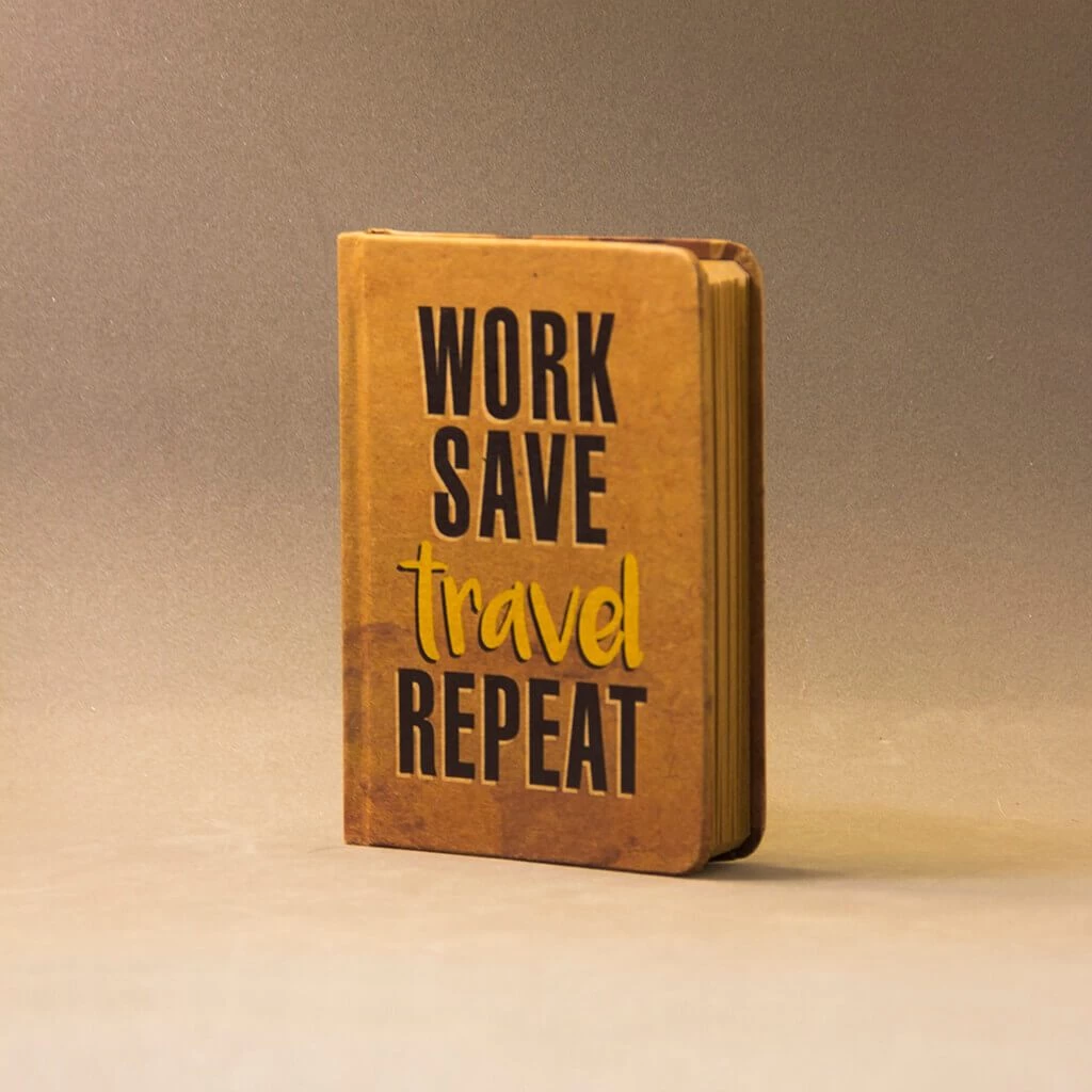 The mantra of most millennials out there, many swear by it as the secret for a happy & fulfilled life. Food, travel, & love if that is your priority list in order, you will appreciate the Life Mantra Notebook With Elastic Closure. This hardbound vintage notebook with a quirky cover that spells out ” Work Save Travel Repeat” is your perfect travel companion. Undo the elastic closure to reveal 54 sheets of deliciously scented plain Kraft paper. Use it to jot down your to-do list or impromptu doodles. Truly a treat for stationery addicts, go ahead, indulge your senses and gift yourself one!