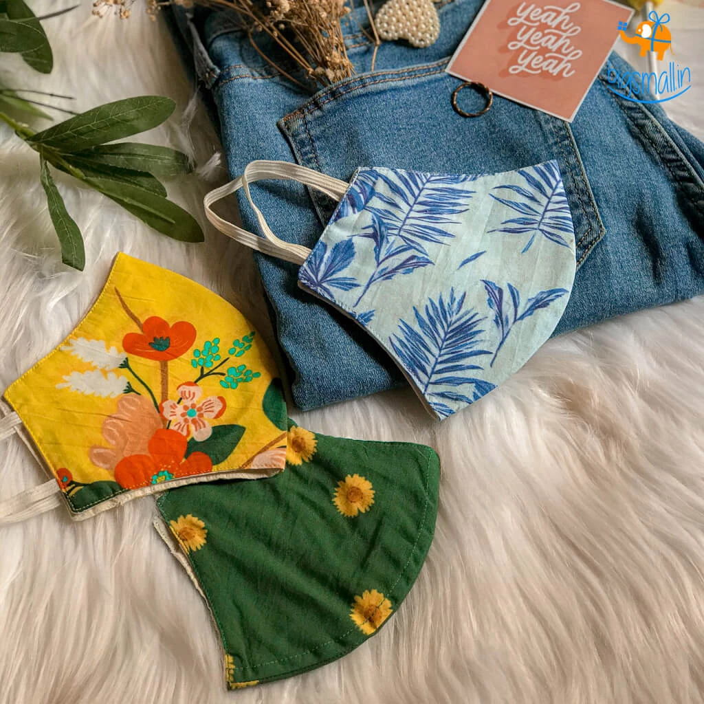 1 x Reusable Floral Cotton Printed Masks – Set of 3