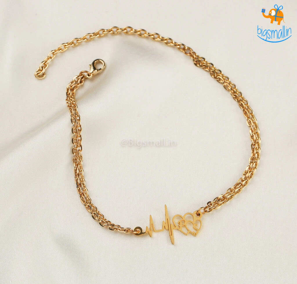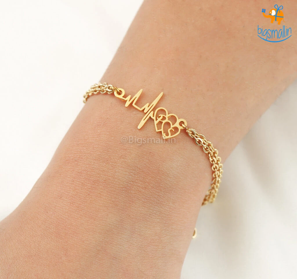 Move away from the basic and regular-looking bracelets and get this super cool Personalized Heartbeat Initials Bracelet for that special someone. Cut out on a metal sheet the bracelet comes in beautiful golden colour. It makes for a great personalized gift for a loved one on a special occasion. Just send us your initials and let us work our magic.