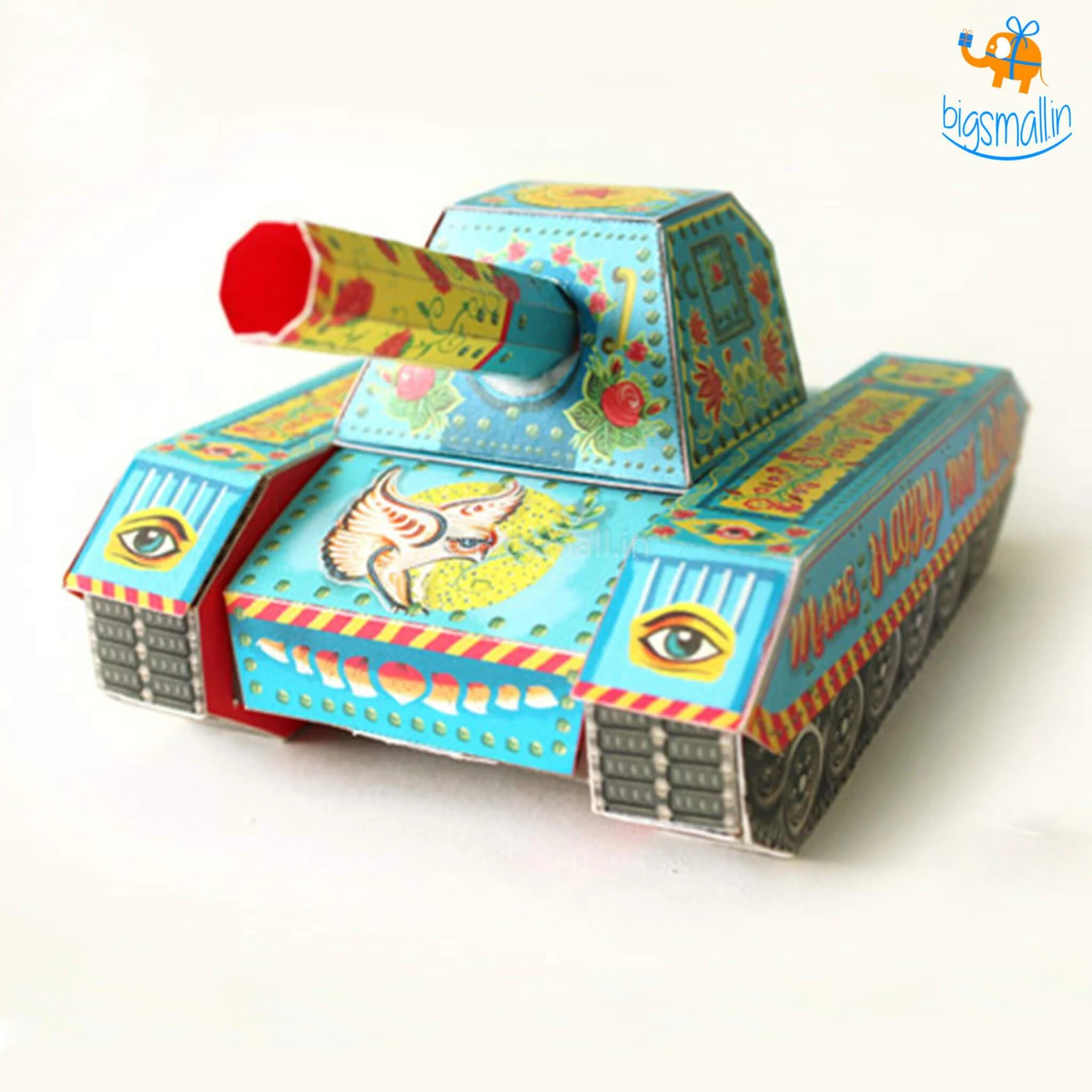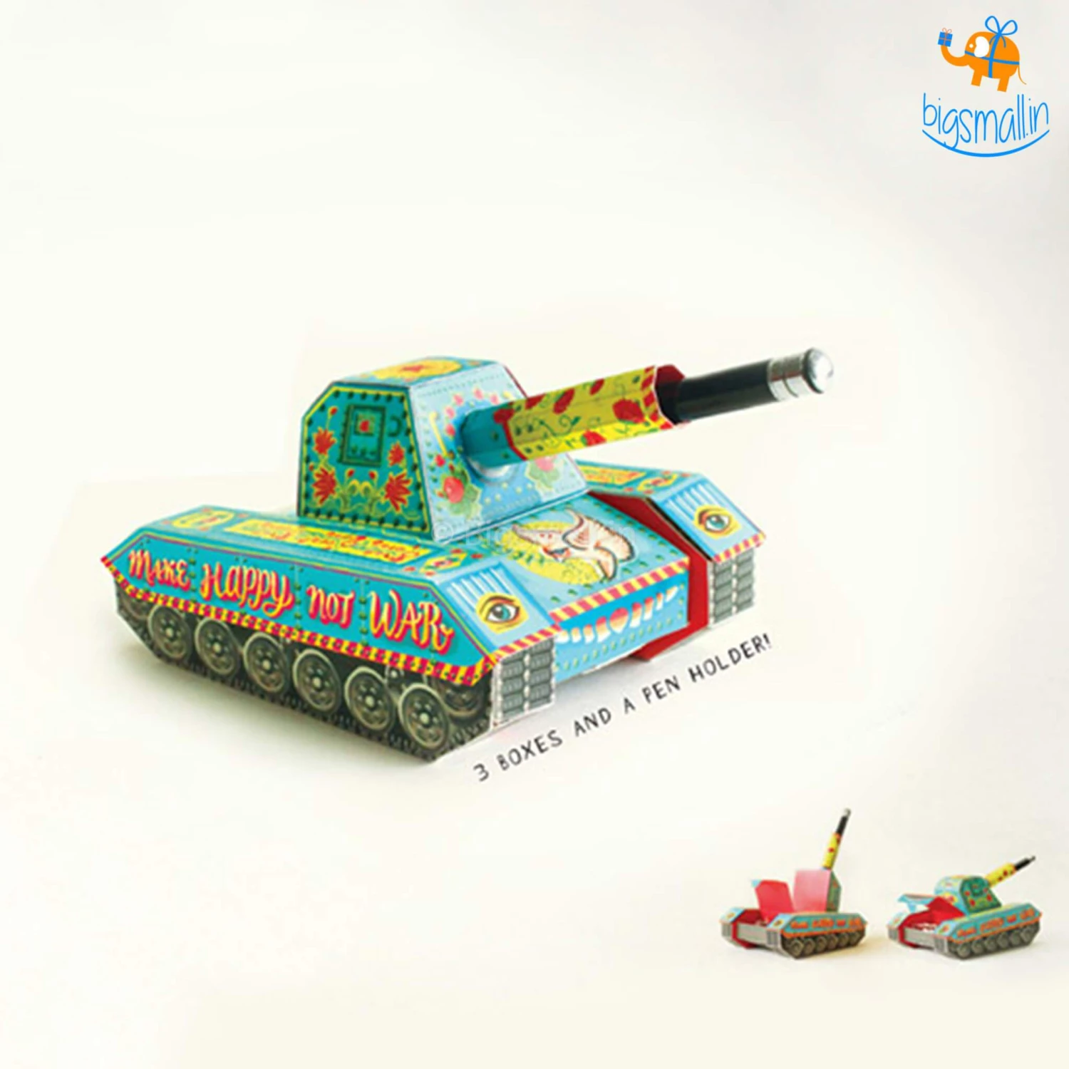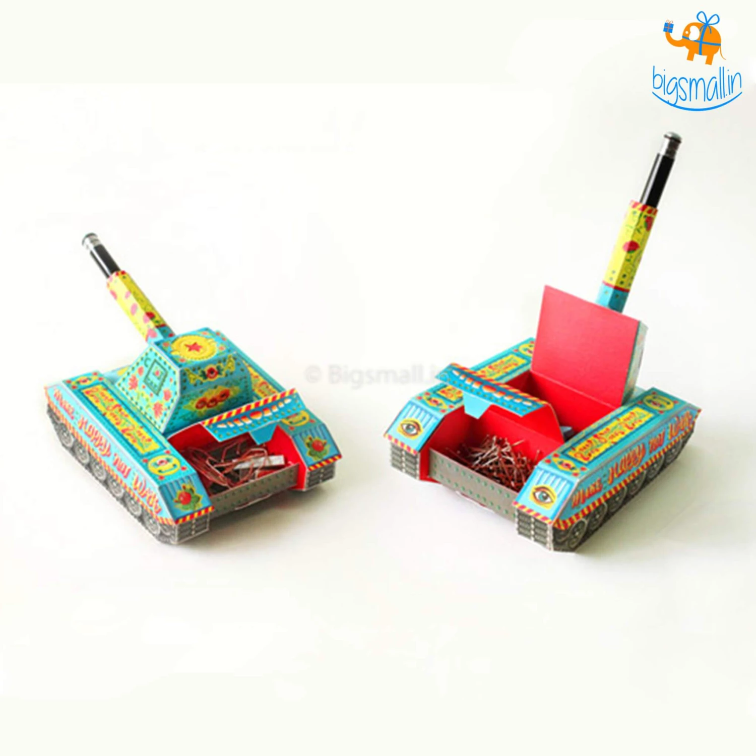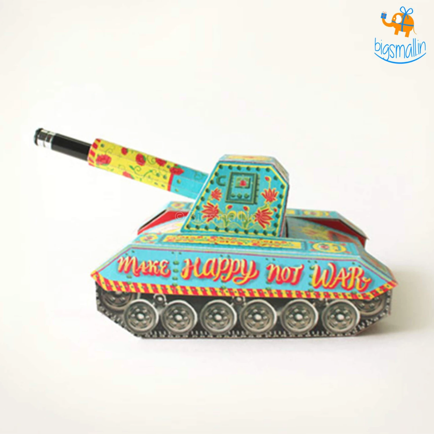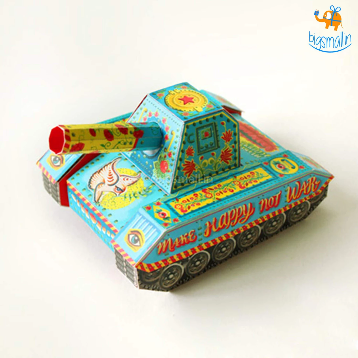 Yep! Ladies and gentlemen, get ready to fire with the DIY Colourful Tank – 3 Boxes and a Pen Stand. Let those creative juices flow and have fun assembling the army tank that spreads the message of peace instead of war. It holds a pen; a tool to dissolve differences with dialogue. It reminds us every day, to choose happiness over war. The tank is complete with military detail and is decorated in the hand-painted Indian Truck Art style.