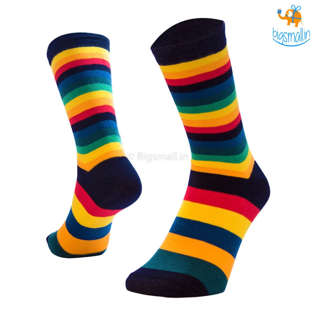 Inspired by the chromatic beauty of Yellowstone National Park, we present Yellowstone Stripes Socks. Put on these brightly coloured socks to match your dashing personality as you set off to work, to school, on a business trip or simply for pleasure! Dance away your worries or simply chill on the sofa, these fun pair of socks have got your feet covered. Made of cotton, they ensure that your feet breathe easy and feel great throughout the day. One size fits all!