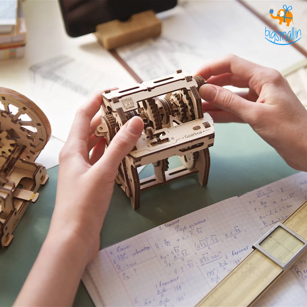Gearbox Mechanical Model is a stylized educational model, an interactive study guide to the mechanism, for learning its essentials and principles of working. After assembly, you can watch and control the rotation speed of the layshaft and drive shaft, or rotating the actuator handle clock-wise. A great gift for the little one, build this puzzle over the weekend and have a bonding time. It also makes for a perfect gift for a friend who loves puzzles.