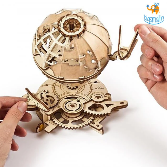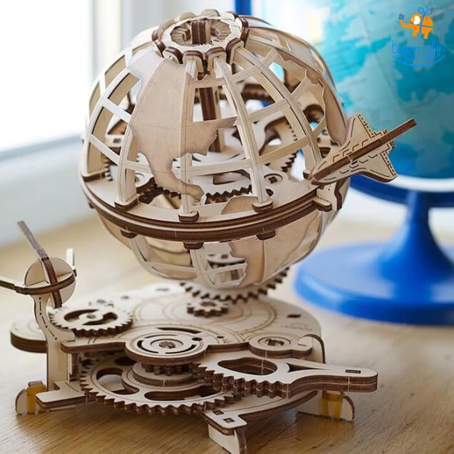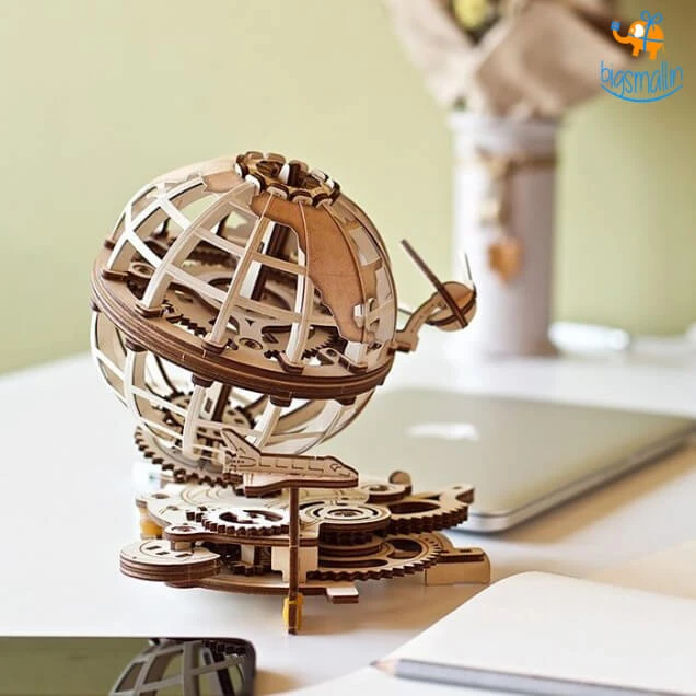 Globus Mechanical Model is a stylized model of Earth with a set of decorative continents and a rotating mechanism. The sphere of the globe sits on an axle inclined along the same angle as the axis of the Earth for authentication. The model uses a winding method to work. Pull the lever at the base clockwise to wind up the mechanism. When the lever is released, the globe will start rotating. A great gift for the little one, build this puzzle over the weekend and have a bonding time. It also makes for a perfect gift for a friend who loves puzzles.