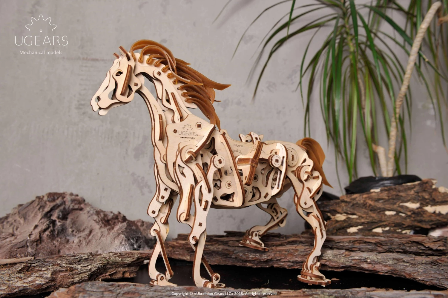 The number of components in the box is 410 pieces. The Ugears Horse-Mechanoid model kit is made of sustainably sourced high-grade wood and has everything you might need for assembly. The quality of the parts is top-notch: a laser method is used for cutting items from a plywood board that provides precise hairline cuts. The details have to be pulled out of the boards and assembled to create a complete model. The product comes with an instruction manual in 11 different languages.Â