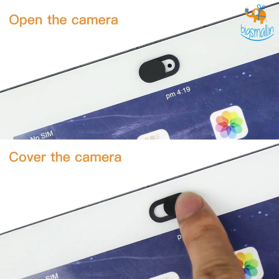 - Slide to cover or uncover the webcam