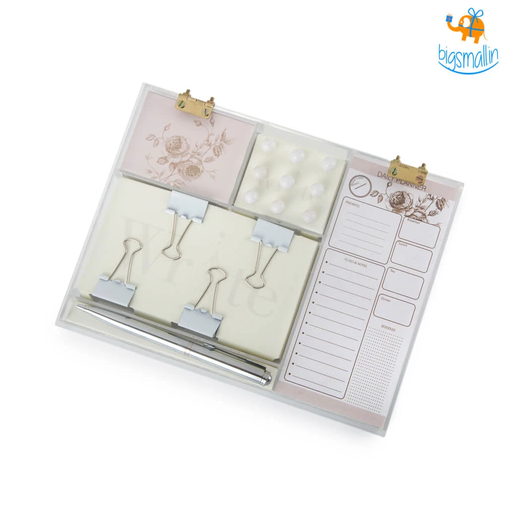 The same old plain coloured papers, basic black pushpins and pages off a notepad for making to-do lists is what you’re used to? It’s time to break out from those boring habits and make something as basic as office stationery more exciting. The Peony Stationery Kit is the perfectly themed stationery kit which comes with 5 pieces of stationery items which you will use daily at your workspace. From the pushpins to the to-do lists, everything in an aesthetic floral theme. The best gift for entrepreneurs who have just started out or the ones who need to take their office aesthetic a level up.
