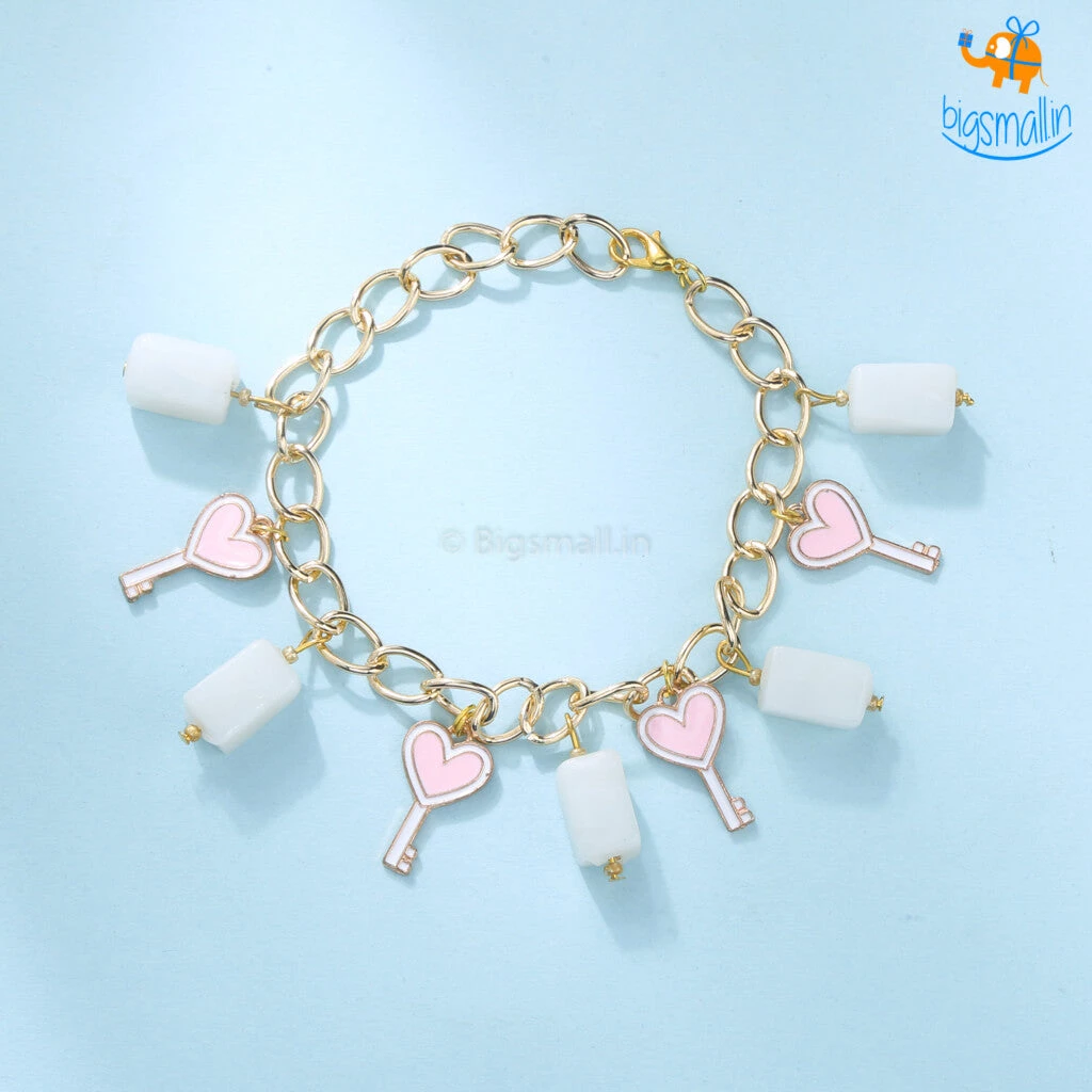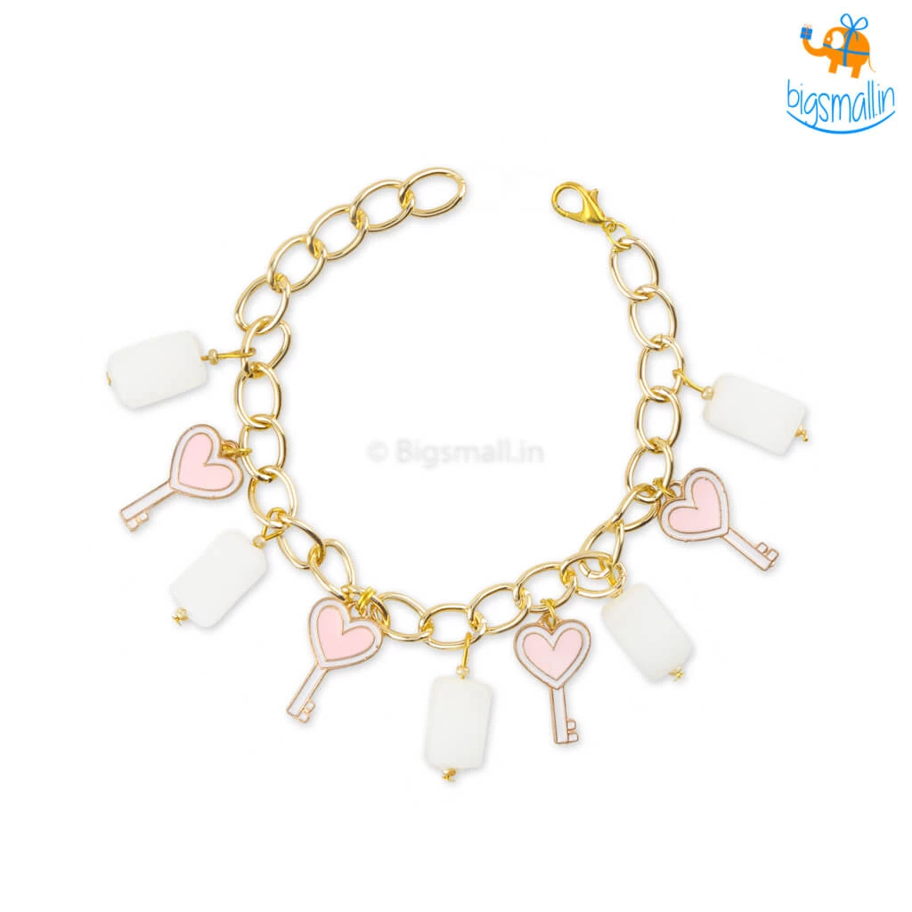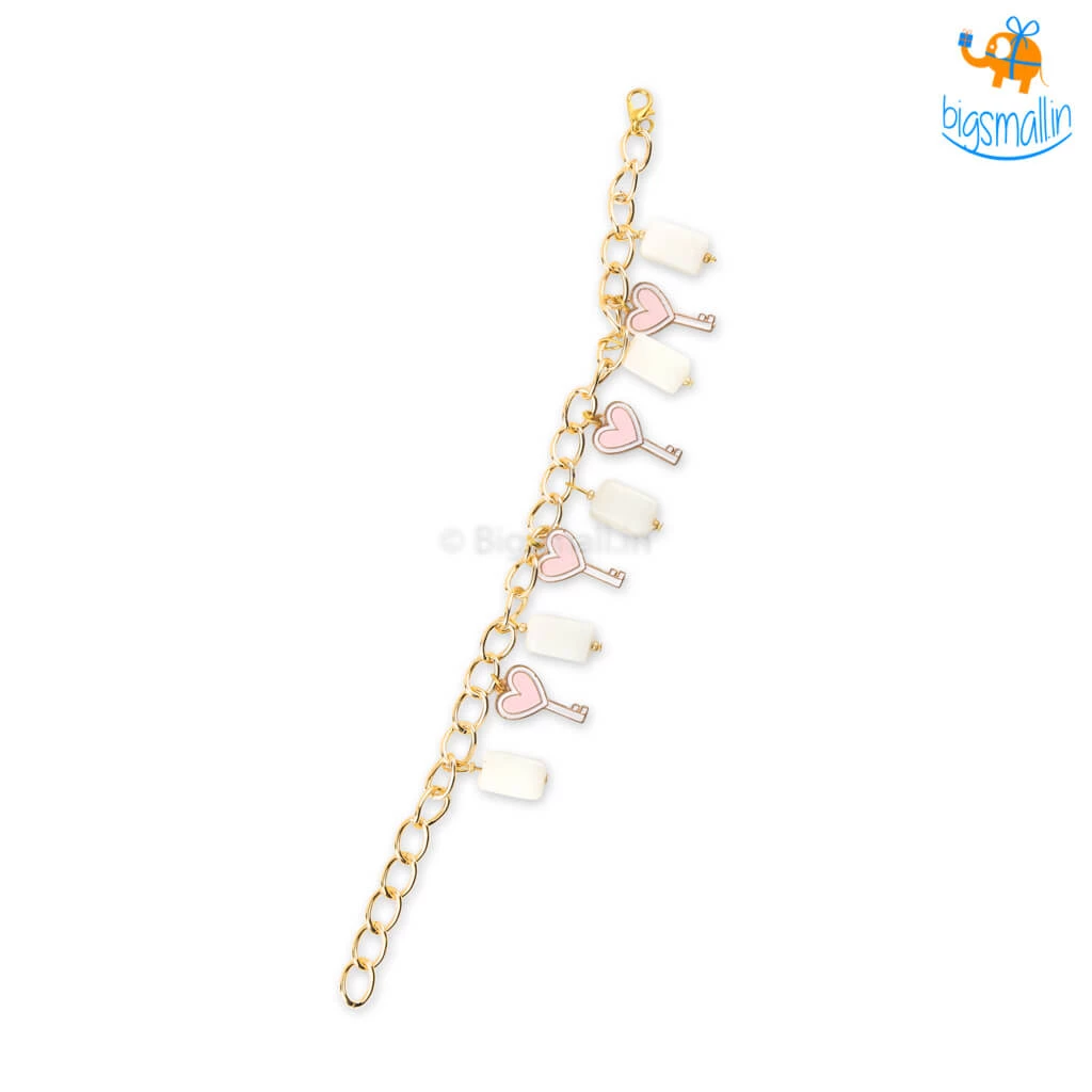 Know someone who loves playing dress up and always dresses to the nines? We have just the thing that your friend would love, the Heart-Key Beaded Charm Bracelet. It comes with an alternate pattern of beads and charms and looks super fun on the wrist with its charming golden colour. Flaunt your cute outfit, complete with this cute bracelet!